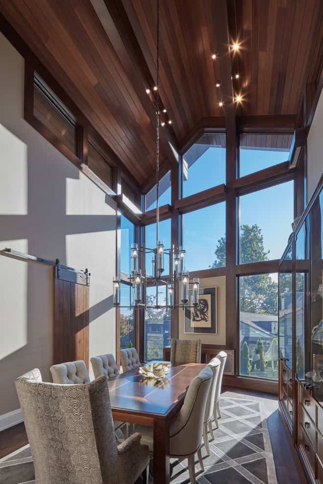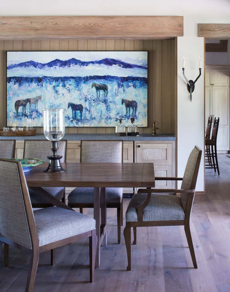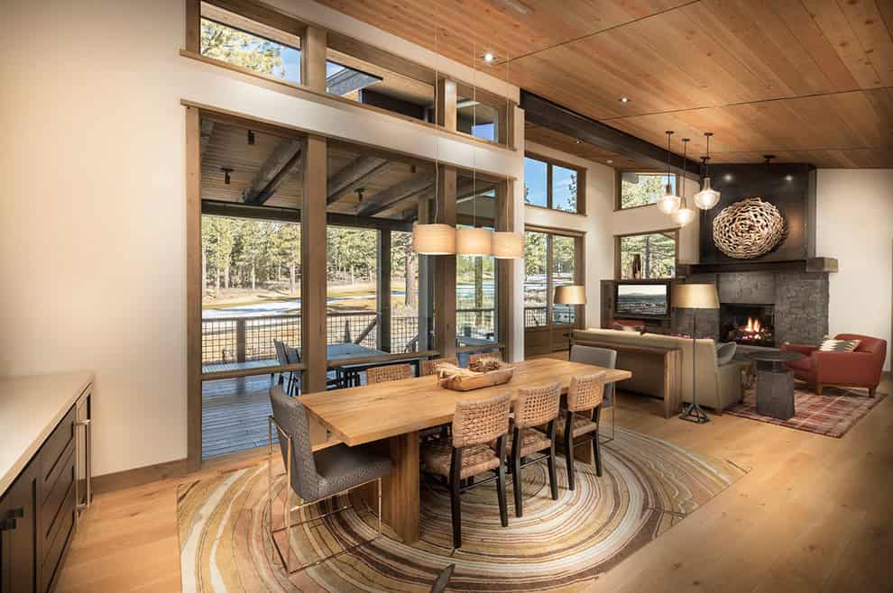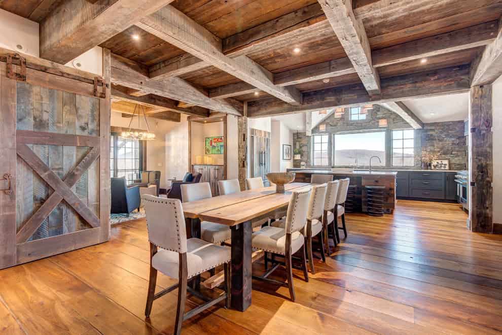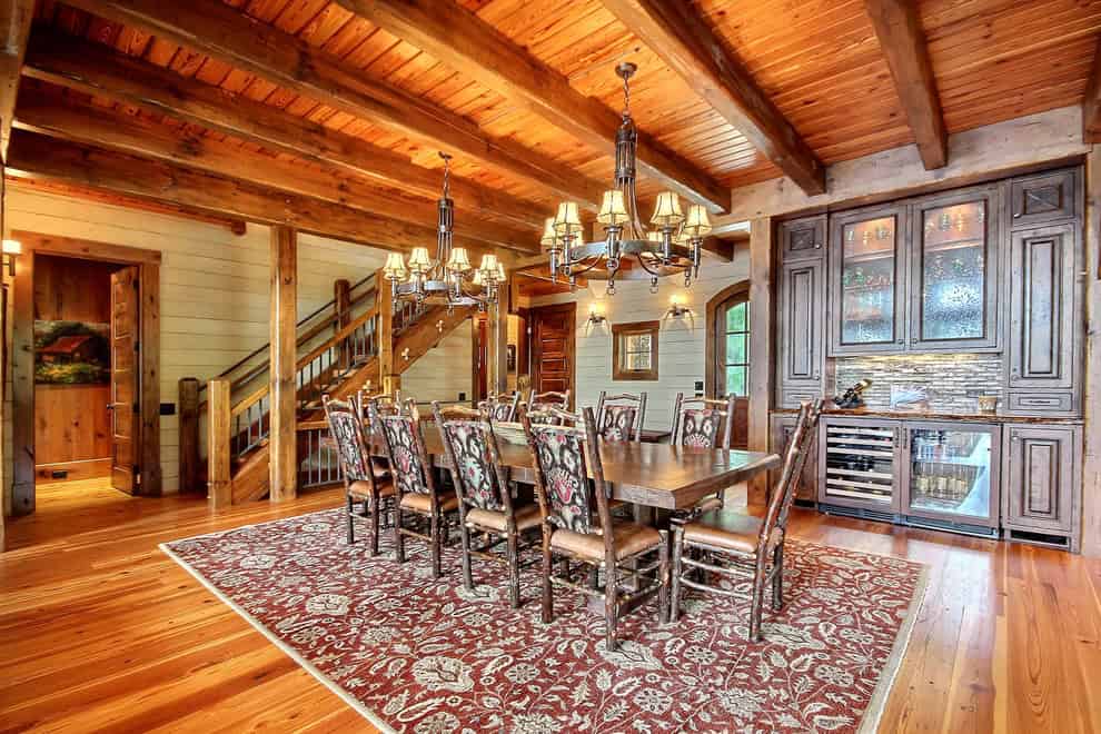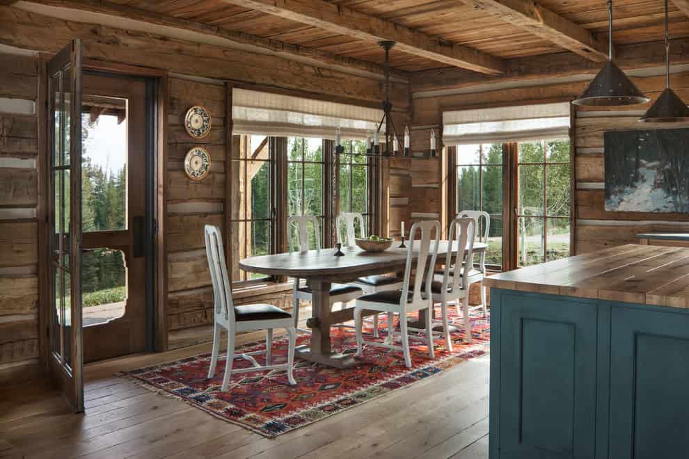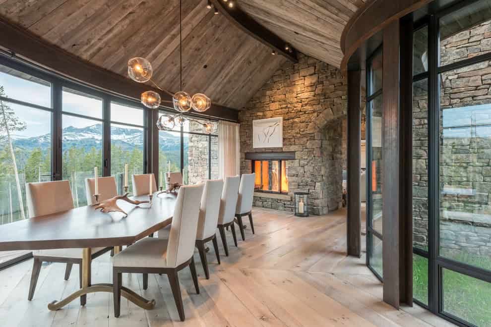 The rustic dining room is a special place that can comfortably accommodate the entire family as well as guests. Its warm and cozy feeling is derived from the use of wood in the decor as well as other raw materials such as stone and steel, but perhaps the best part of the rustic interior design style is the beautiful blend of nature and design. As you will see below, most of the rustic homes that we’ve taken these dining rooms from have plenty of large windows that not only allow a lot of natural light to makes its way inside, but also present the inhabitants to beautiful views of the surrounding areas.