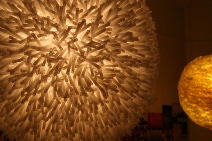 What can we do with plastic straws after use? For example, fast food chains give out more than 50 million meals per year that contribute greatly to a landfill full of straws. The good news is that these straws can be reused towards art and craft projects! They are generally made from polypropylene or polyethylene, which is a recyclable material and you can easily make a lot of interesting objects such as lamps or decorative items. If you don’t want to put them in the recycle bin, be creative in how you want your structure to look!  It’s okay to freehand your design to see what may come out of your structure. To connect, squeeze the end of the straw and slide it through the end of another. Flex the straws at their bendable section to shape and mold the straws into loops, twists and turns.
