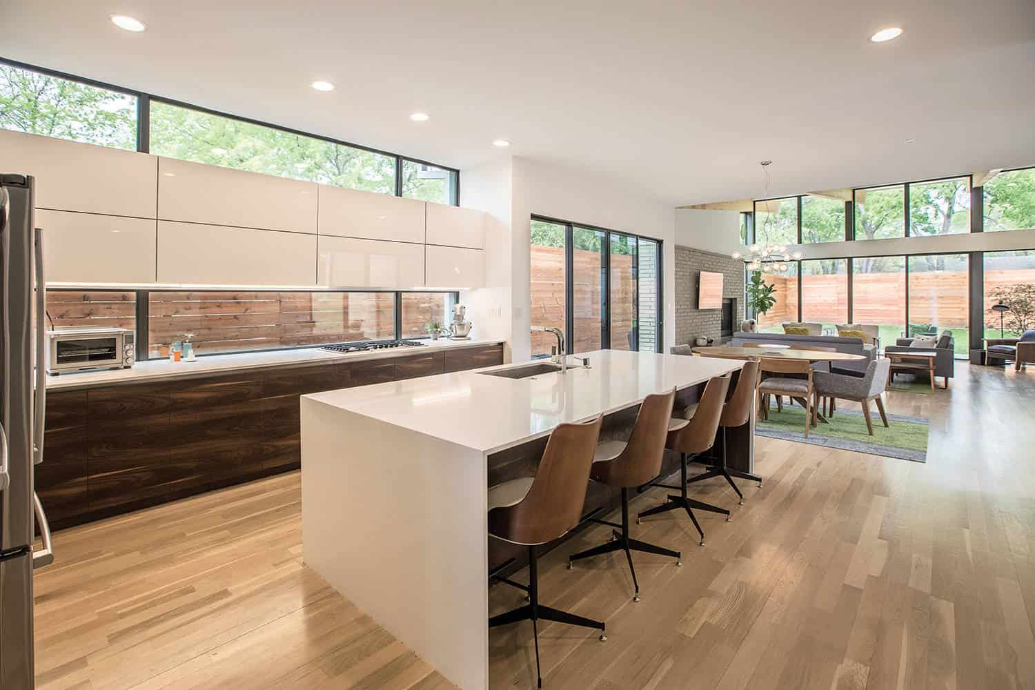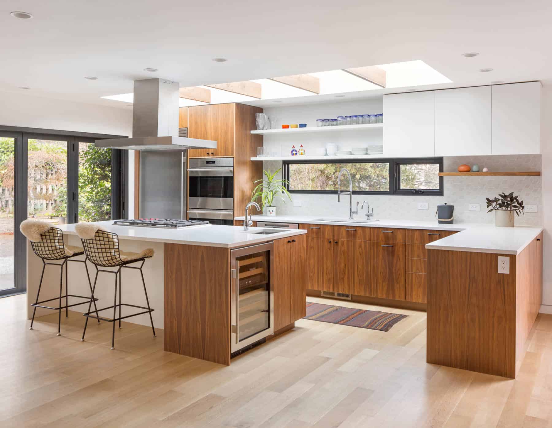 Warm wood tones are another defining feature of mid-century modern kitchens. Whether through walnut cabinetry, teak accents, or oak flooring, wood plays a central role in bringing warmth and natural beauty to the space. These organic materials are often paired with bold, vibrant colors, such as mustard yellow, turquoise, or avocado green, which were popular in the mid-century era and continue to add a playful, retro vibe to modern kitchens.
