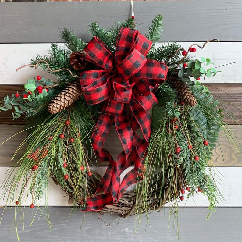 3. Buffalo plaid rustic wreath