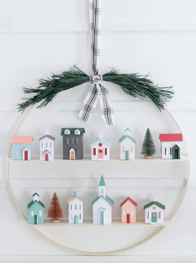 1. DIY CHRISTMAS VILLAGE HOOP WREATH