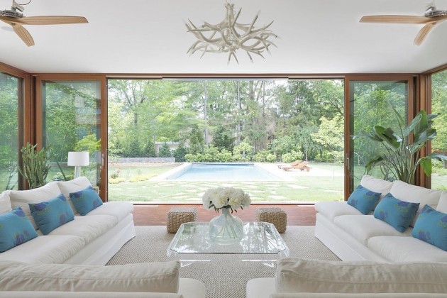 The sunroom is usually a room which is constructed on the side of a house and is surrounded by a lot of windows or, in the most modern sunroom designs, with glass walls. Although the sunroom isn’t as popular in the modern residences due to their high usage of glass walls and huge windows, the sunroom allows enjoyment of the surrounding landscape and nature while sitting inside on a warm and cozy place, under shelter from the weather conditions outside. And the experience gets even better if you have your tempting contemporary pool right in the point of view from the sunroom.