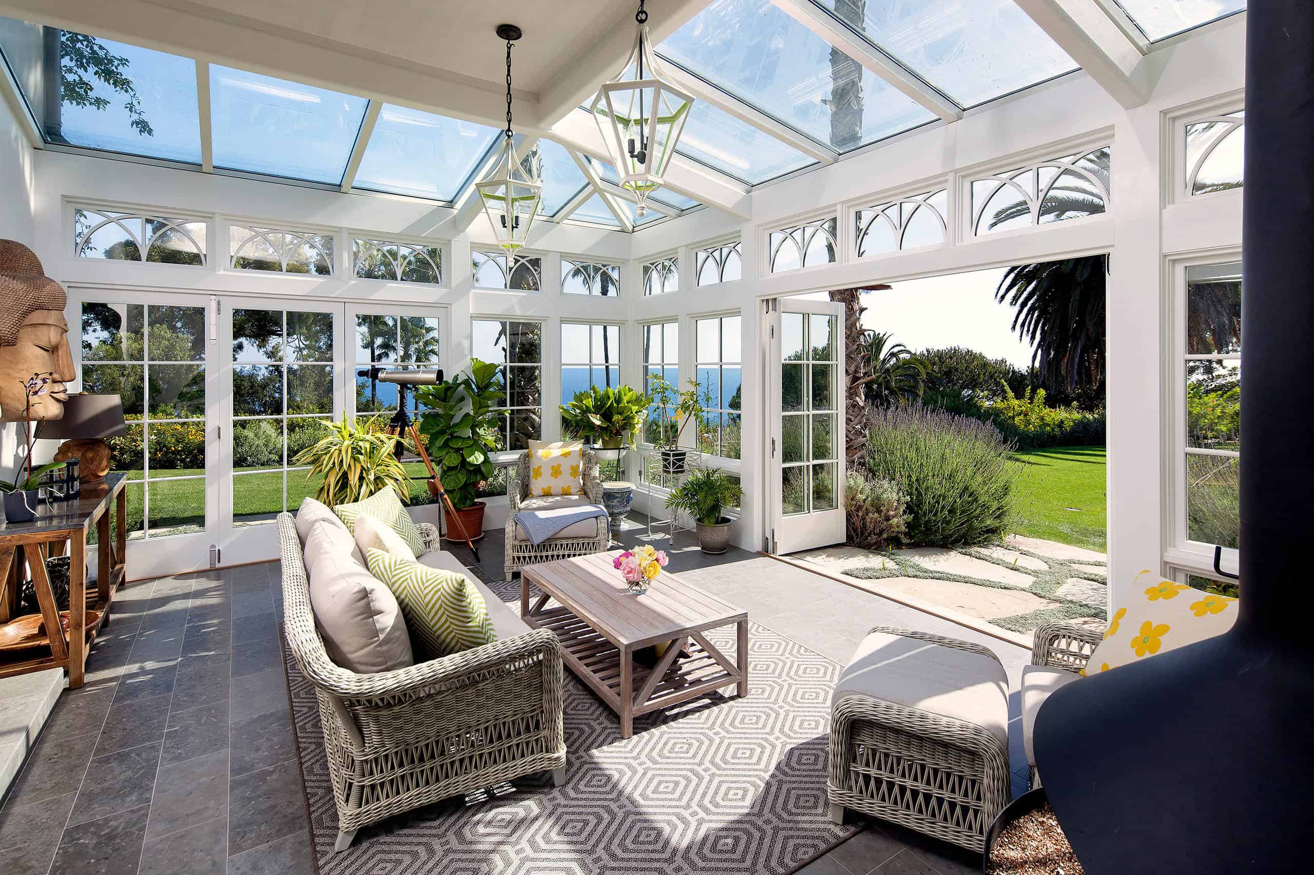 We all love spending our evenings outside on the deck or in the garden with the entire family or maybe even throwing a party with a few friends. But all of that changes as soon as the weather shifts from the smooth summer breeze to autumn’s cold and rainy scene. All of a sudden, you can’t spend almost any time outside because it is constantly raining or just being cold and yet the sights of fall’s palette make you want to spend every moment outside. Well, you can do the next best thing – sit comfortably in your Mediterranean sunroom while watching your garden turn orange.