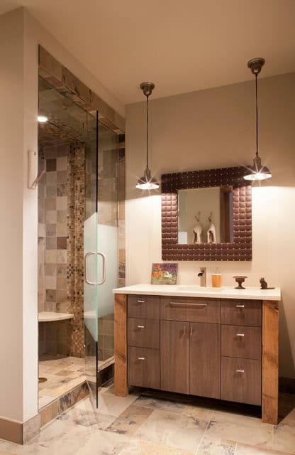 The rustic bathroom design is a story for itself. It can look very modern but still have a rustic touch and feel at the very same time. The most important thing about it is that it makes you feel warm and cozy even when you are taking a shower while observing the snow outside of your rustic residence which is located on a mountain or on the lakeside.