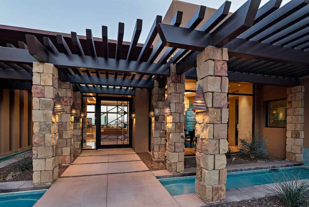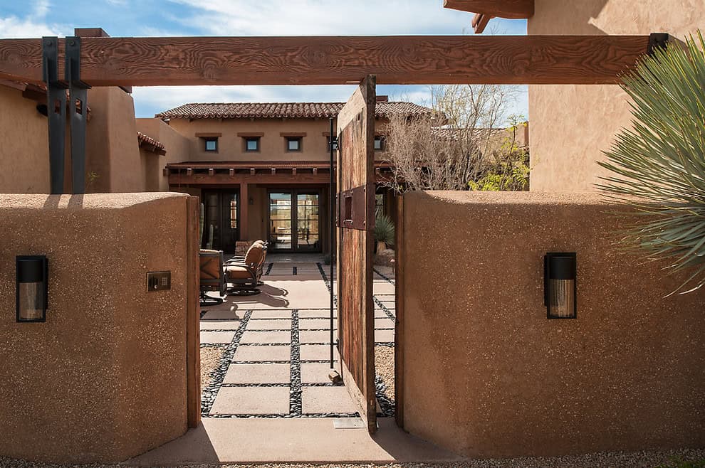 The Southwestern style has a very unique charm with its contemporary looks built upon rustic features taken directly from the surrounding rural environment. So how do you let someone know they are walking in a home that belongs in the location its at? You must set the tone during their approach towards the Southwestern entryway that will lead them inside. To do that, you need to build an area that will invite people without breaking character. It has to give hints of what is to be expected once you walk inside.