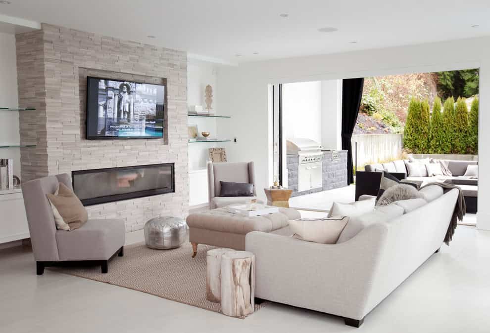 But regardless of it’s purpose, any good living room must have a comfortable sofa, a coffee table and a focal point which can either be a TV or a fireplace, and maybe even both.