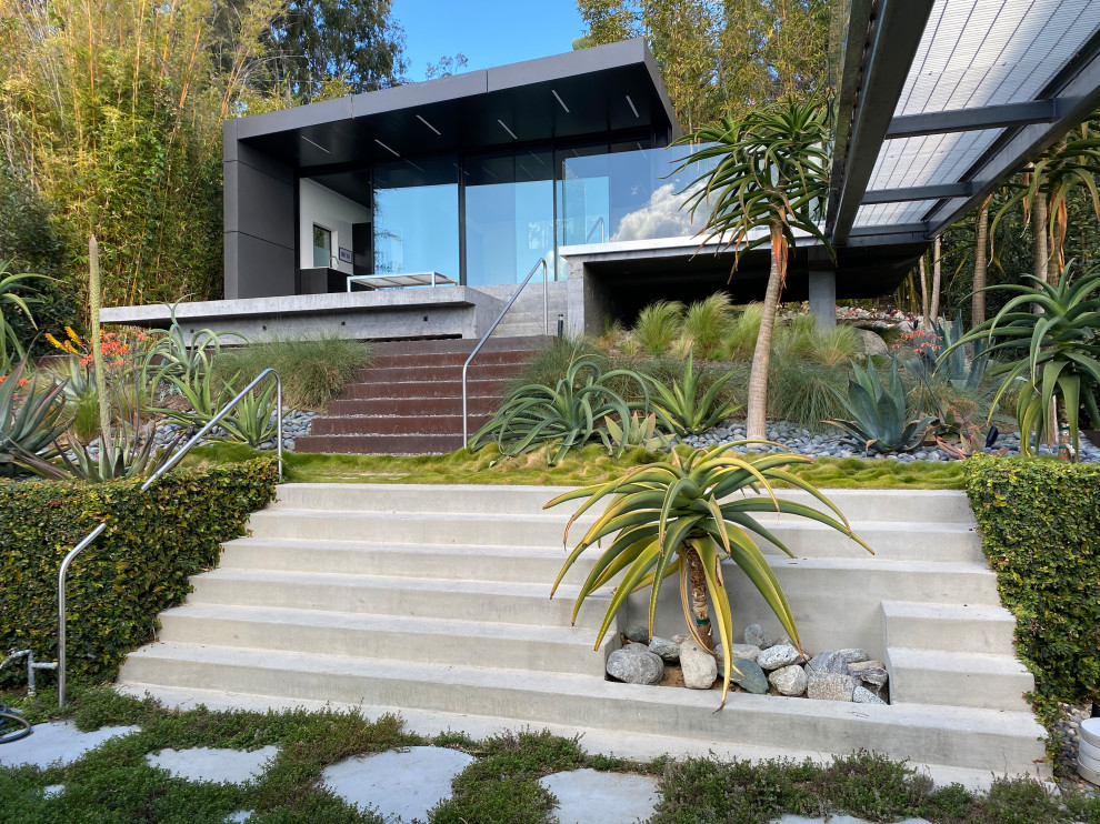 6. modern partial sun concrete paver landscaping in San Diego