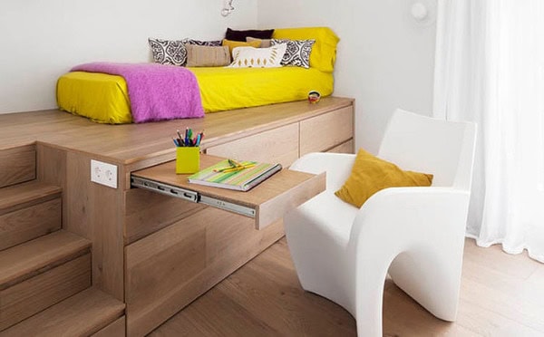 If you have a lack of free space, and you don’t have a separate place for your work space, you can add it in your bedroom. Some people are trying to keep electronic distractions away from the bedroom, but for others this is right solution for their tiny house. If you don’t have where to put your work space in any other part of the home, this can be considered as a quality solution. That way you will have completely private and peaceful home office, where you can be more productive.