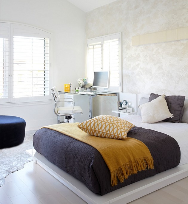 Making work space in your bedroom is a lot easier than you think. You can set some work table in any corner of your bedroom. You need to find some comfortable chair, who will provide excellent grip on your back. On the edge of the table, you can set some lamp for extra light, and you bedroom workspace is nearly done. See our fascinating proposals and find inspiration!