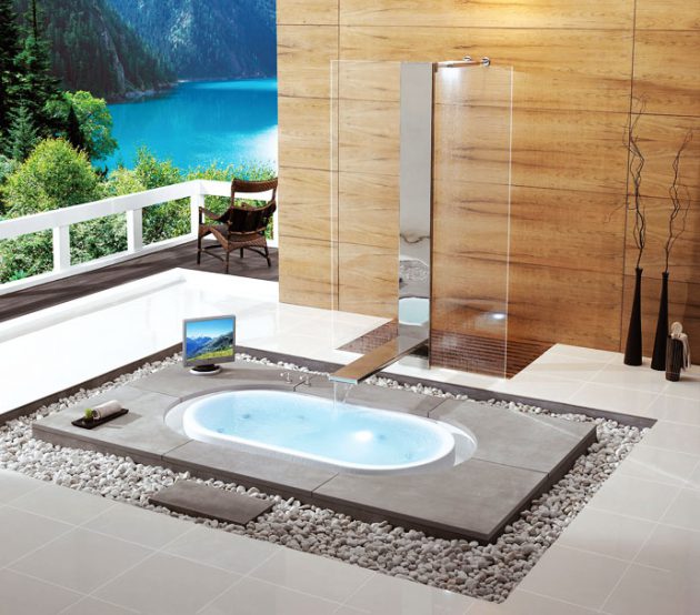In recent years, the trend are tiles that imitate natural materials, such as stone, marble or wood. These textures give warmth and luxury of the room. Expensive ceramics is not enough to look nice one bathroom. It is necessary to be arranged with style. In the following gallery we present you one truly fascinating collection of 15 Really Awesome Bathrooms With Sunken Bathtub That Will Amaze You. All of these bathroom designs are stunning and represent private haven for everyday relaxing. If you have possibility, you can copy some of the following ideas, for your home. Check out below, and you will remain speechless!