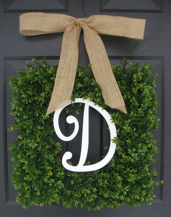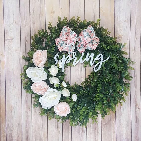 13. Farmhouse Boxwood Floral Spring Wreath for Front Door