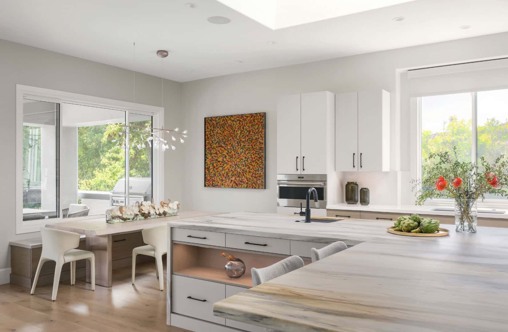 From open-concept designs that effortlessly blend into the living room, creating inclusive spaces for cooking and conversing, to dining areas that seamlessly extend from the kitchen island, these designs redefine the heart of the home. Imagine the convenience of preparing a meal while still being part of the lively chatter in the living room or hosting a dinner party where the kitchen effortlessly transitions into the dining area.