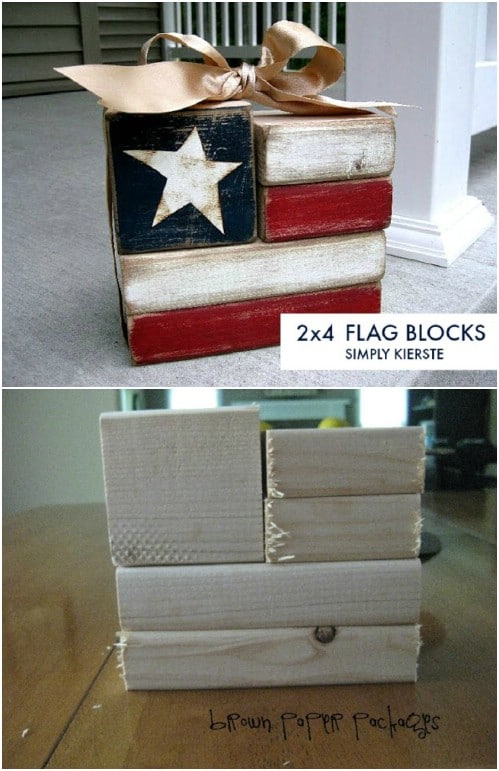 8. Rustic DIY 2X4 Wooden Flag Blocks