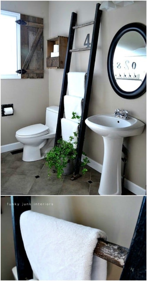 10. Over the Toilet Storage – Leaning Bathroom Ladder