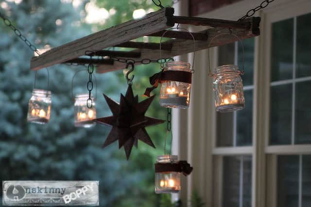 11. Pottery Barn inspired ladder lantern porch chandelier