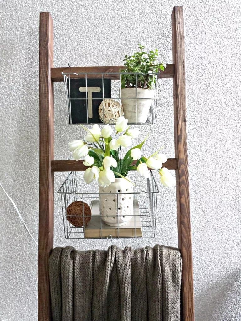Farmhouse style decor is an awesome way to decorate your home. It can work with almost any type of home style, even with modern and contemporary homes but it is more aimed at more traditional or rustic homes. In any case, repurposing this is a great way to create farmhouse decor for your home and this time we’re going to be looking at a very interesting repurposing idea. Old ladders. That’s right, it seems like you can make plenty of awesome things using old ladders so we are going to show you DIY ladder decor projects that will beautify your home with unique items.