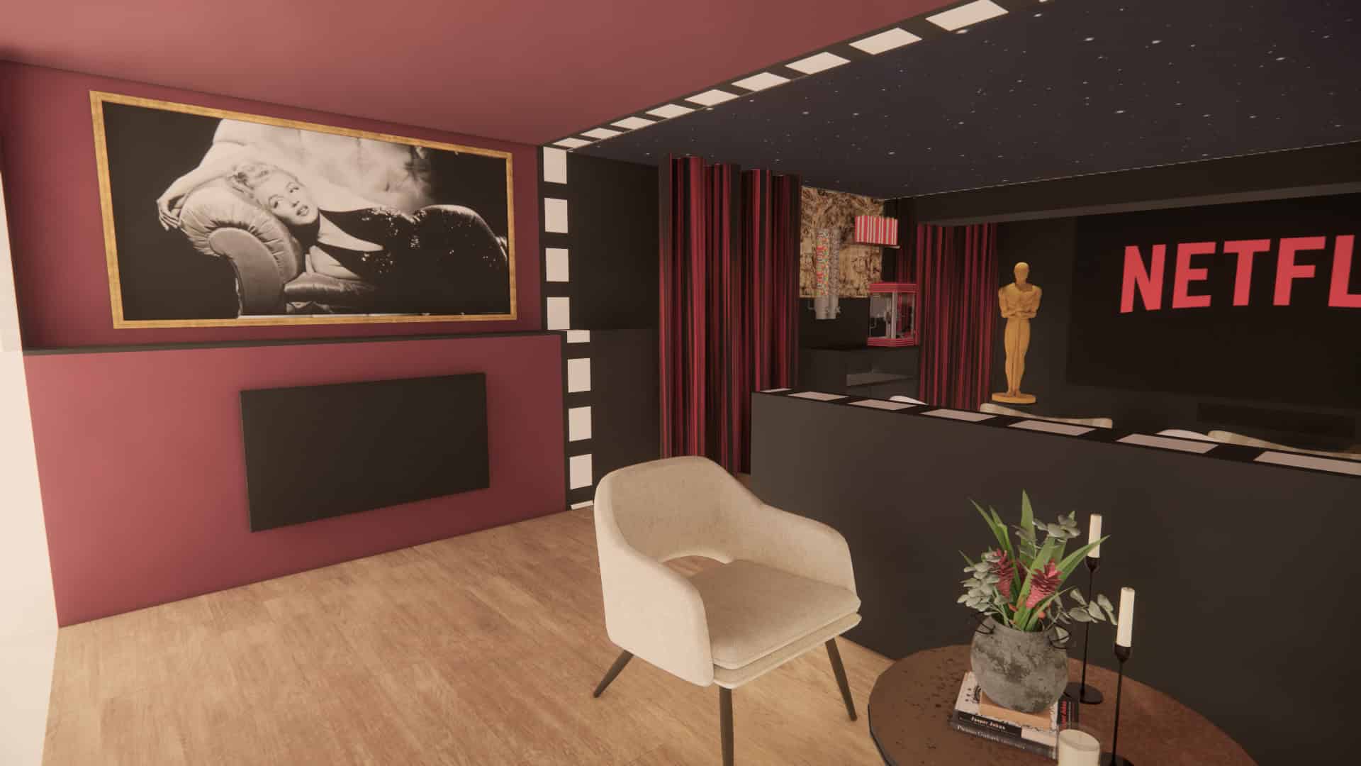 Incorporate decorative accents such as sculptures, vintage cameras, or film reels to add character and depth to the space. A midcentury home bar can also be a delightful addition, serving as a stylish refreshment area. Consider including a bar cart with retro glassware and a selection of your favorite beverages to enjoy during movie nights.