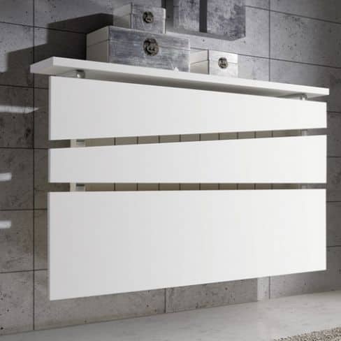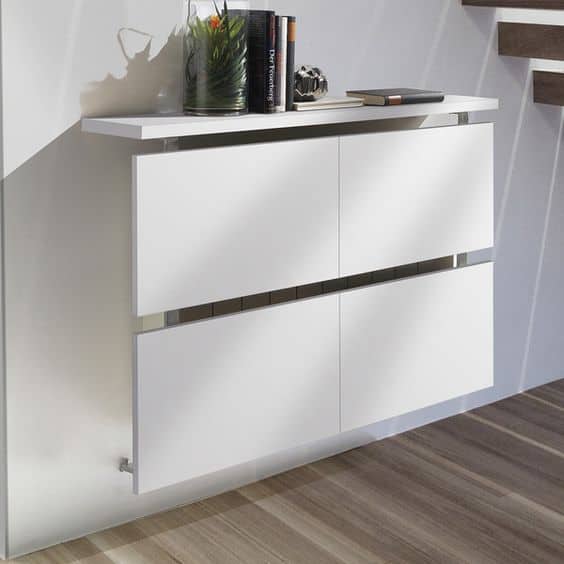 This type of radiator mask is very practical, since it has to be, just like in the classic cabinets. Another advantage of this radiator mask is that it provides full utilization of the upper surface of the additional storage. In order not to neglect such an important aesthetic appeal, it should be noted that the perforations at the front can be ordered in a range of some creative designs and patterns – from rosettes and diamond motifs, to the fish bones and various geometric shapes! Take a look below, and you will see various examples of interesting and cool masks and coverings for the radiator!