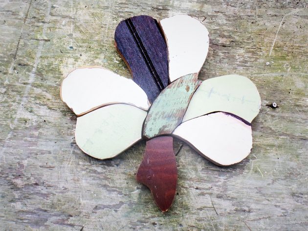 6. Cut off and shape pieces of reclaiming wood into a lucky shamrock