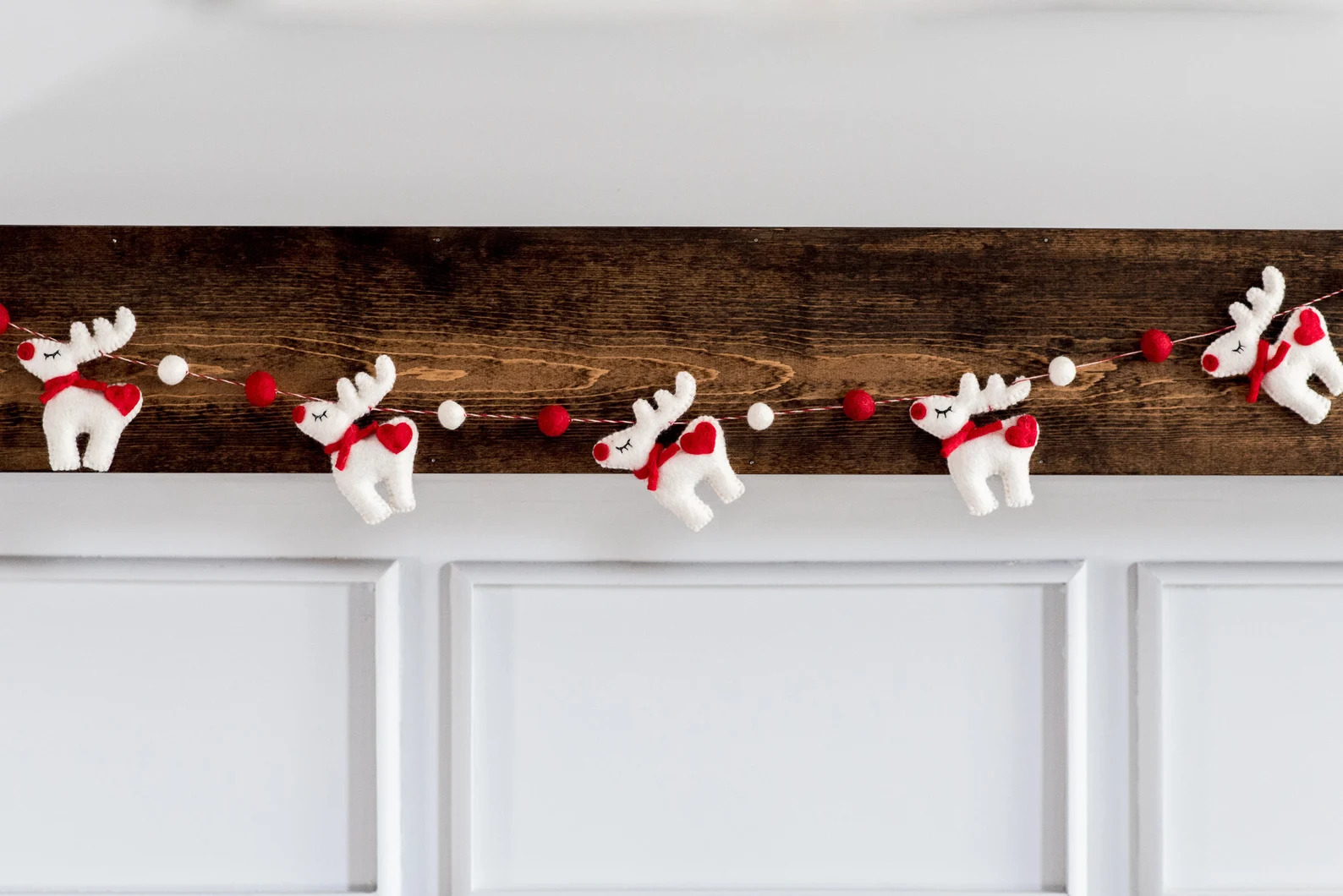 9. Merry Berry – Red & White Felt balls with green leaves Christmas garland