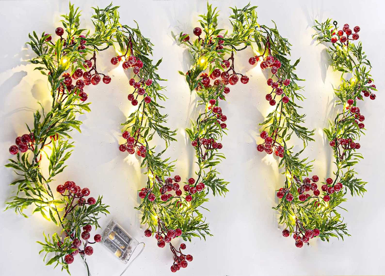 6. Snowy Red Berries LED String