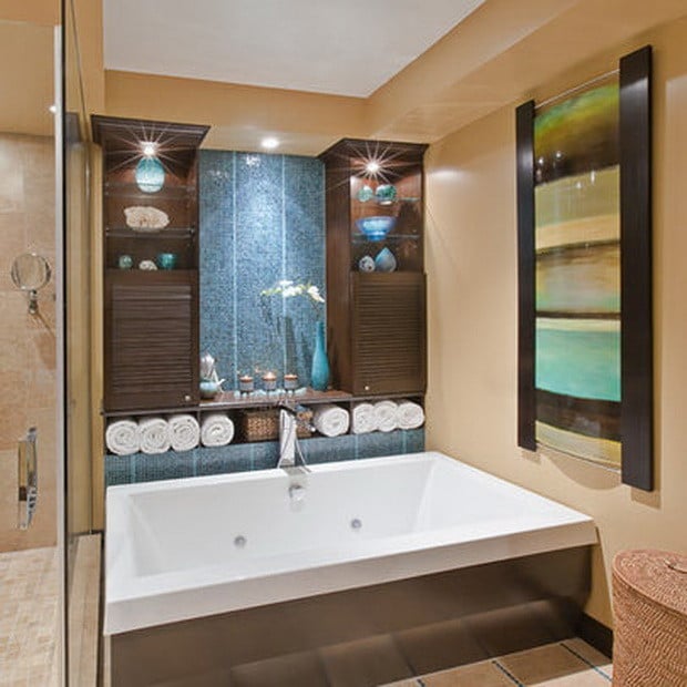 For decorating bathroom with luxury touch, we have a variety of luxury items such as a TV with mirror, multimedia systems, innovative heaters with beautiful design, a variety of decorative objects, fireplaces and superior LED lighting with hot tubs. Some luxury bathrooms have built-in sauna with exclusive lighting, and a beautiful marble elements that decorate the walls and the bathroom floor. Every element and every detail in the luxurious bathrooms is done seamlessly, from the best and most exclusive materials.