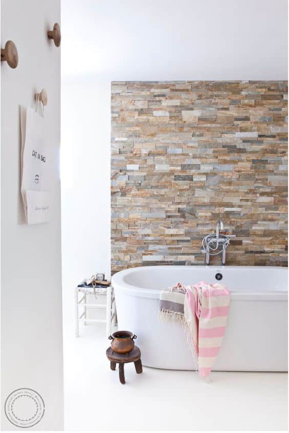The marble walls will always give the maximum dose of luxury and trendy are the plastic or paper wallpaper with special coatings that allow their installation in wet areas such as bathrooms. So, it is a special wallpaper designed exclusively for the bathroom, so be sure to be careful not to replace the usual. When you do the final selection of wall coverings, you should consult with experts who will point out their advantages and shortcomings – this is especially true if you suspect that some materials, such as certain types of wood, well tolerate steam and moisture, which is inevitable in the bathrooms. The same is true for the mandatory involvement of trusted contractors, that will guarantee quality setting for certain wall coverings. So if you need some inspirational idea how to highlight one wall in the bathroom, take a look below, and you will find many ideas that will make your bathroom to look more pleasant and attractive!