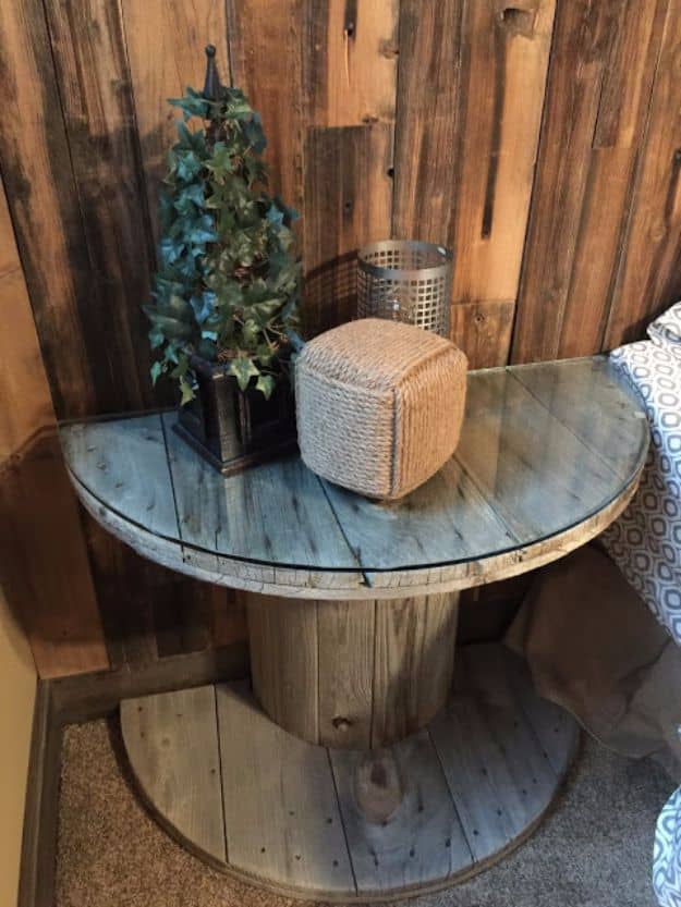 16. Wooden Electrical Spool Table Turned Into A Bedside Nightstand
