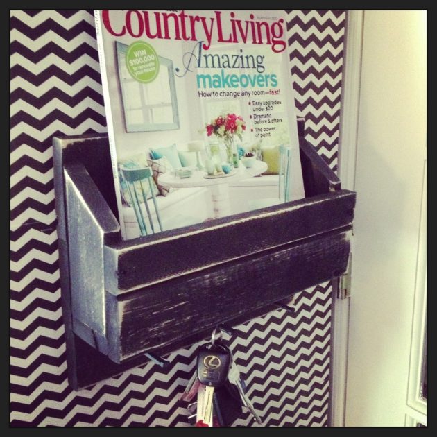 rustic wall organizer with key hooks on the bottom