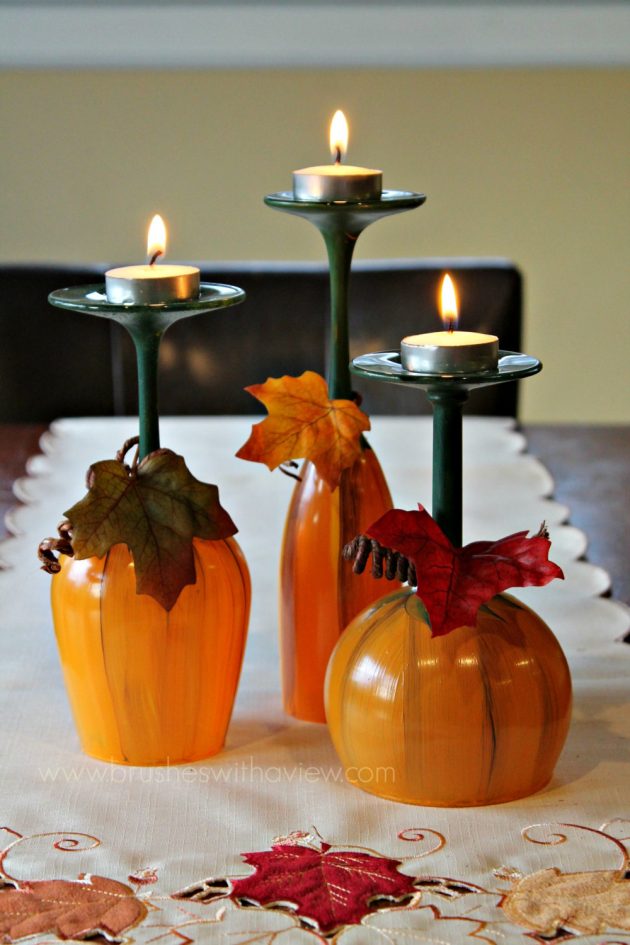 Fall Table Centerpiece Pumpkin Wine Glasses