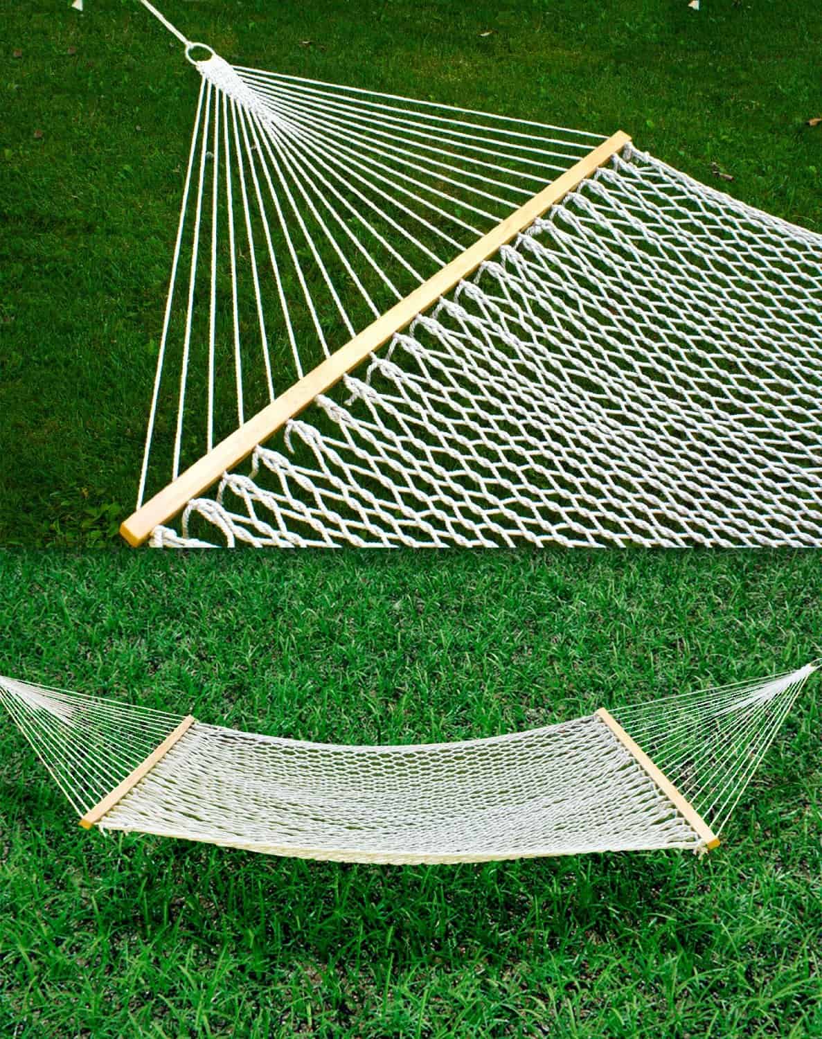59″ Cotton Double Wide Hammock with Solid Wood Spreaders