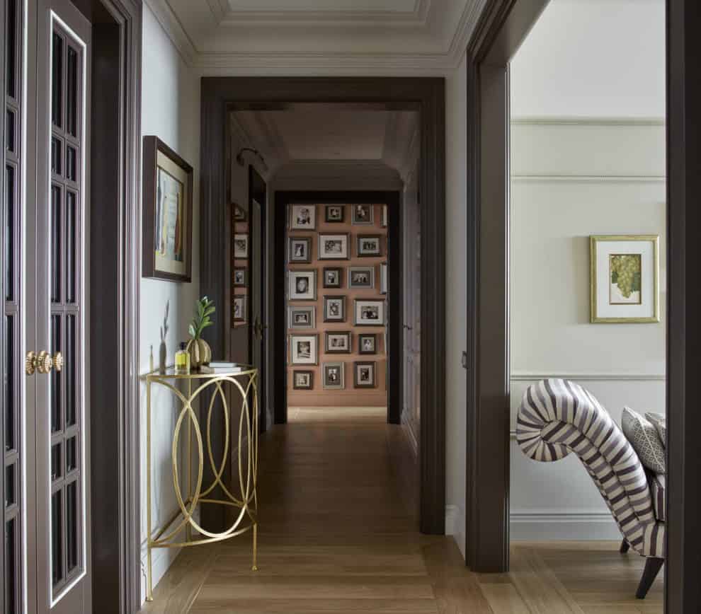 Connect your home in style by choosing a suitable design for the hallway. The traditional hallway interior design is an excellent choice if you are a fan of the timeless elegance of the traditional home design style. It will not only create a comfortable pathway between the rooms of your home, but it will also open up new spaces that you can use for storage or as display surfaces where you can showcase your artwork, travel souvenirs or maybe you can even create a photo wall full of family photos.