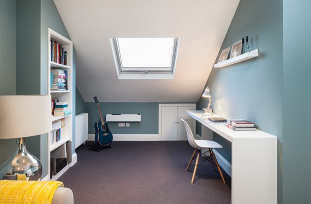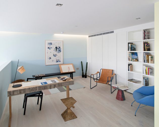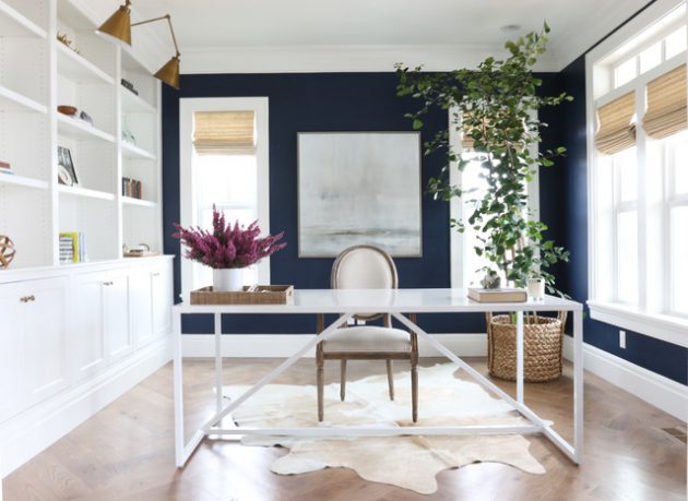 If you need to stimulate your mind, the most productive color is blue. It is ideal for people who are engaged in accounting. If you bother to spend all day in a blue environment, spicing up your space with a little orange is ideal and will bring you a little emotion. Browse our collection below, and you might find idea how to decorate your home office with blue!