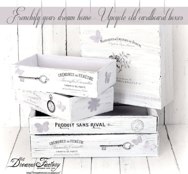 5. DIY SHABBY FRENCH BOXES FROM RECYCLED CARDBOARD BOXES