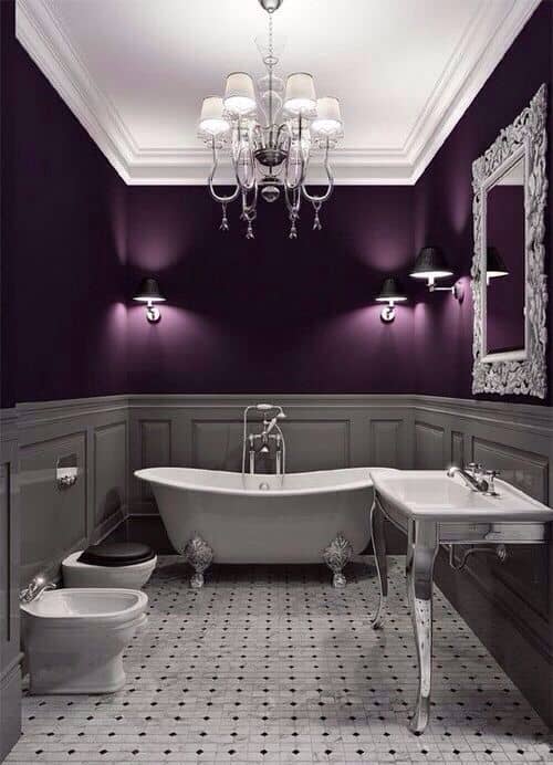 The Gothic style is very special and not particularly popular, but it’s very sophisticated. Gothic bathroom does not have to be black, even though black is very dominant in this style, it can be with purple and red touches, and it is essential to achieve the atmosphere, somewhat gloomy, sometimes creepy, but very sophisticated and decadent.