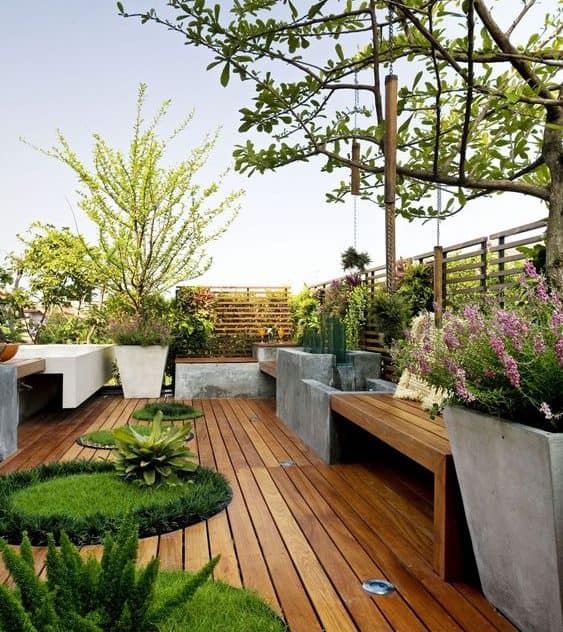 If you have an apartment with a roof terrace- you’re so lucky! Nowadays, there are so many stunning roof terraces in different styles, with gardens, fireplaces, with seating areas or dining areas. Flat roofs are the perfect places to create terraces and small urban oasis. Yard on the roof is modern trend, which is often applied in the world due to lack of space for large balconies and terraces.