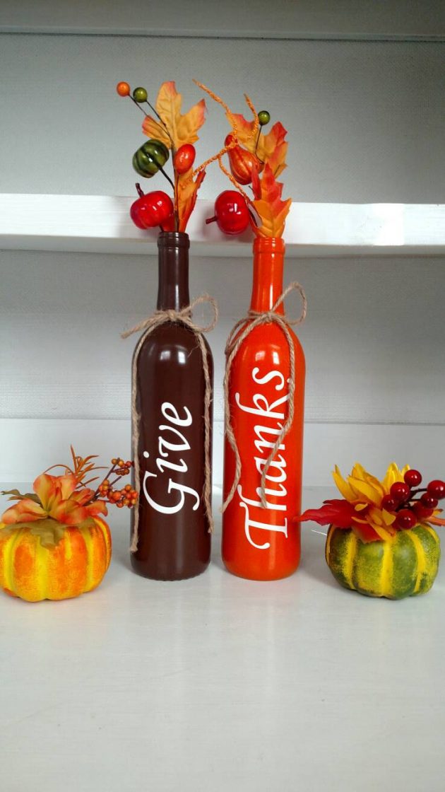 Thanksgiving give thanks decorative wine bottles centerpiece