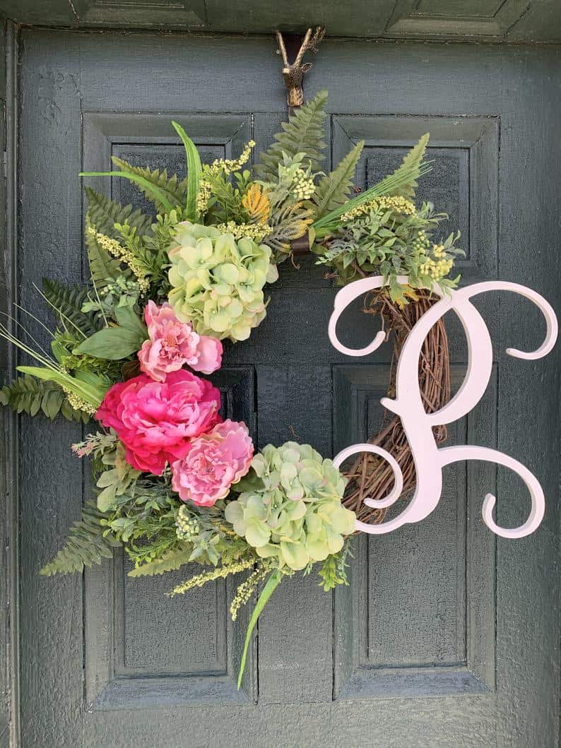 7. Peony Hydrangea and Fern Monogrammed Wreath