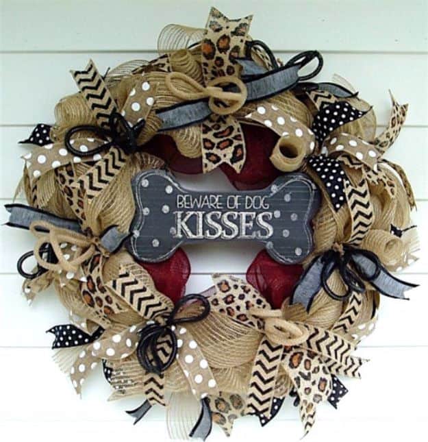 11. Burlap Deco Mesh Wreath Cute Dog Warning