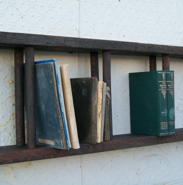 Antique Wood Double Ladder Mounted for Book Shelves or Display Shelving