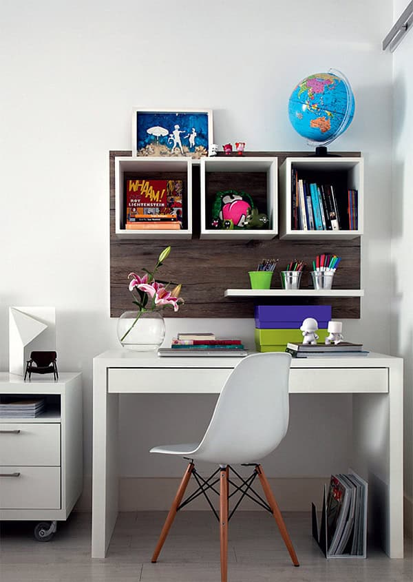 When it comes to teen’s room, table should be set that way, to allow full concentration of the child, such as, for example, in the corner of the room. An ideal place for a desk is by the window, to have natural light for succesfull work. If the table is not set by the window, the lack of daylight should be upgraded with table lamp, which is mandatory piece in every work space. Below you can see one collection of 16 Cool Teen Work Space Design Ideas, which are interesting and functional in the same time!