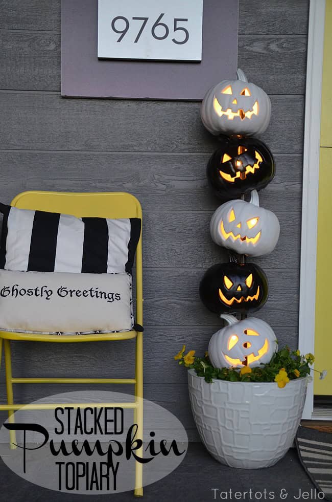 11. EASY BLACK AND WHITE HALLOWEEN TOPIARY