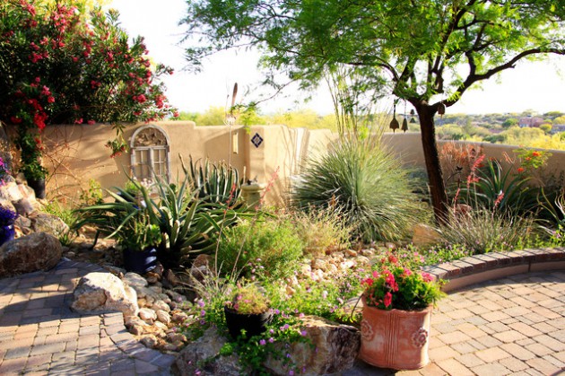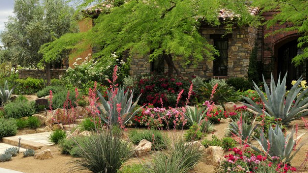 Decorating the landscape of a small home is a challenge. Creative arrangement of the garden and courtyard of smaller dimensions is obtained with stylish adapted living space, relaxation, fun, gardening and many smaller seating space. So this small exterior can become an extension of the home and interesting natural corner. Particular attention should be paid to the furniture and plants, because they determine the space. If you like to make extraordinary landscape, we have amazing proposals for you. We present you some beautiful landscape designs with desert themes. All of them are interesting and extravagant and will look inviting and gorgeous in any yard. Take a look at our collection and see what we’ve got for you!
