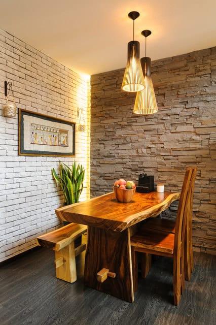 The simplicity of the rustic dining room makes it fairly easy to decorate if you get the style correct. The wood materials that you are going to be using need to match the rest of the materials used in the design of your home’s interior. The dining table should also match the color scheme as well as material of the furniture that surrounds it. In some cases though, it might prove to be a good idea to add contrast by using a glass table or a wooden table with a contrasting color.