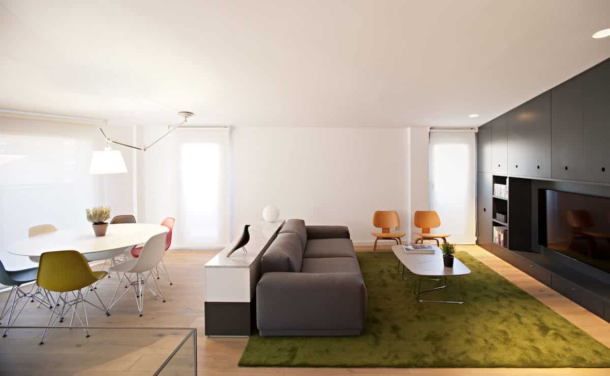 If your floor is dark and you have a dark piece of furniture, you must insert bright elements and details in the space such as rugs, lamps, or other decorations… In this case, white doors, walls and curtains can be appropriate choice.