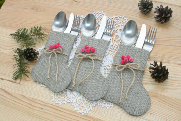 Burlap Christmas Silverware Holder