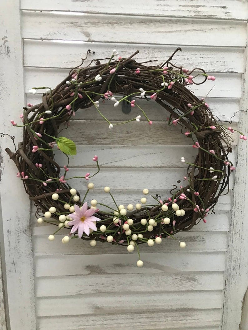 11. Simply Pink Small Grapevine Spring Wreath