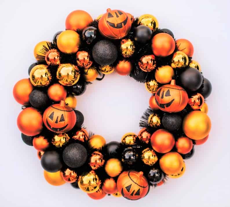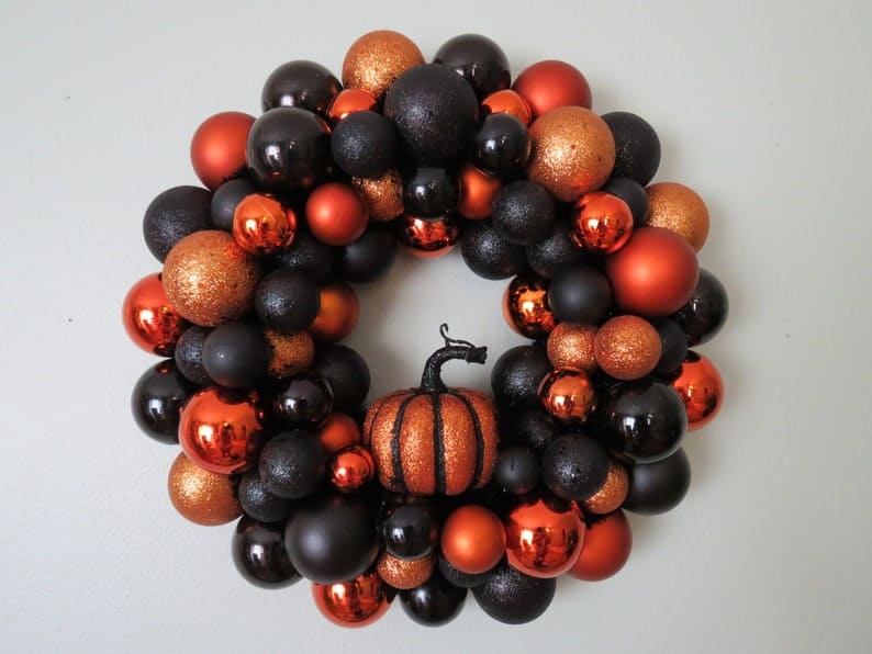 14. TRADITIONAL Black and Orange Ornament WREATH