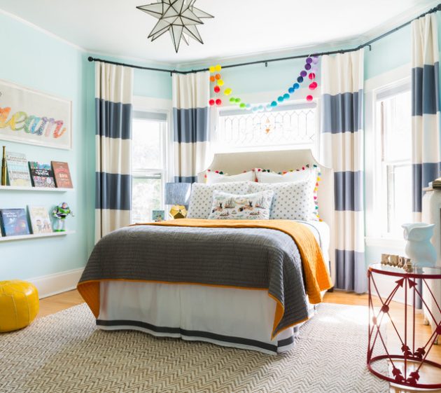 The room of your toddler should be quite illuminated with natural light, which is very good in the hours when your child is playing or doing some other things. The smaller children during the day need to sleep and there is sometimes wish to the older ones, but the light in the room often bother them and can not fall asleep. Once the afternoon rest is need and without sleep, while watching a cartoon, in comfortable position, when the curtains are set on the windows, because there the room will seem cozier. Or simply, you can place curtains as a decoration in the child’s room.