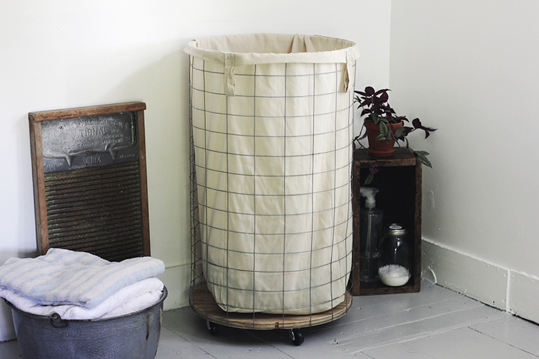 10. Upcycled Farmhouse Stool, Lamp and Mat